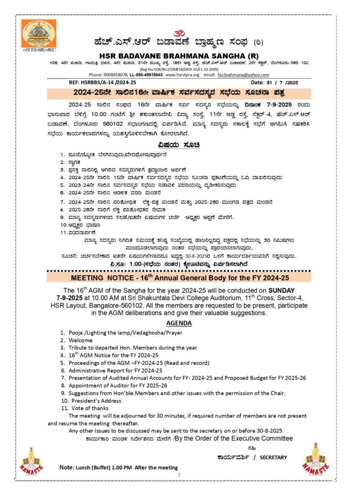 Annual General Body for the 2023-24 was conducted on Saturday, the 19th October 2024 at 10.00am at Shakuntala Devi College, HSR Layout…